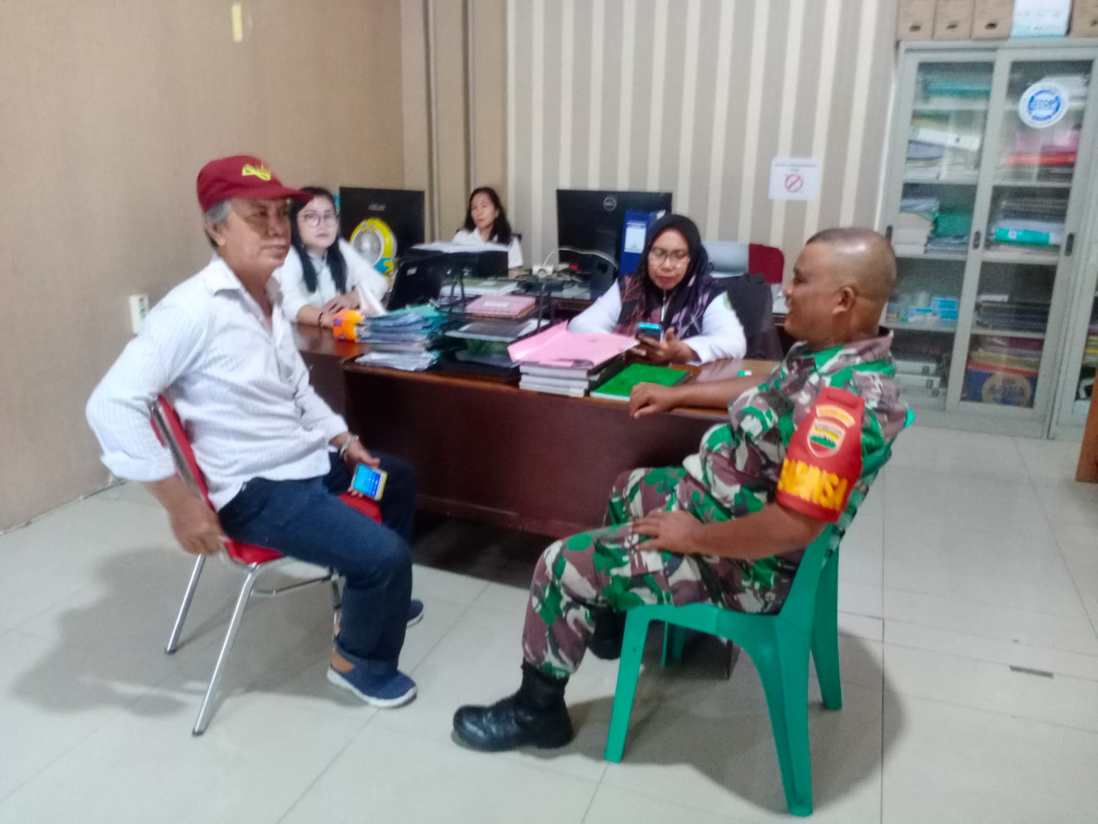 MEDAN 05/MB | Babinsa Koramil 0201-05/MB Kodim 0201/Medan Sertu Musliadi melaksanakan komunikasi sosial (komsos) dengan Aparatur Pemerintahan Kelurahan Sei Mati, Kecamatan Medan Maimun.