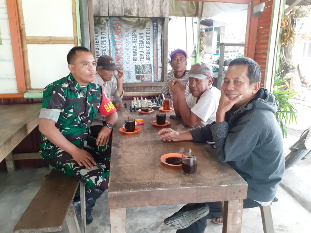 Dalam komsosnya di salah satu warung kopi milik Bapak Tekno, Babinsa Serda Ahmad Hasibuan menyampaikan kepada warga masyarakat untuk selalu menjaga kekompakan antar warga, hidup ber gotong royong dan turut serta dalam menjaga Kamtibmas di lingkungannya.