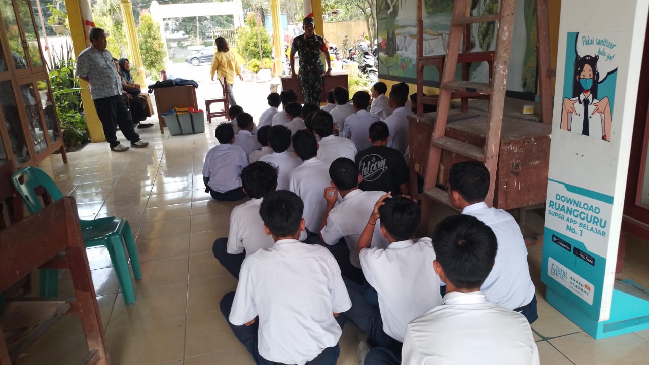 UNTUK MENCEGAH TAWURAN ANTAR SISWA, BABINSA KORAMIL 0201-13/PST MEMBERIKAN ARAHAN KEPADA PARA SISWA DI SMP NEGERI 35