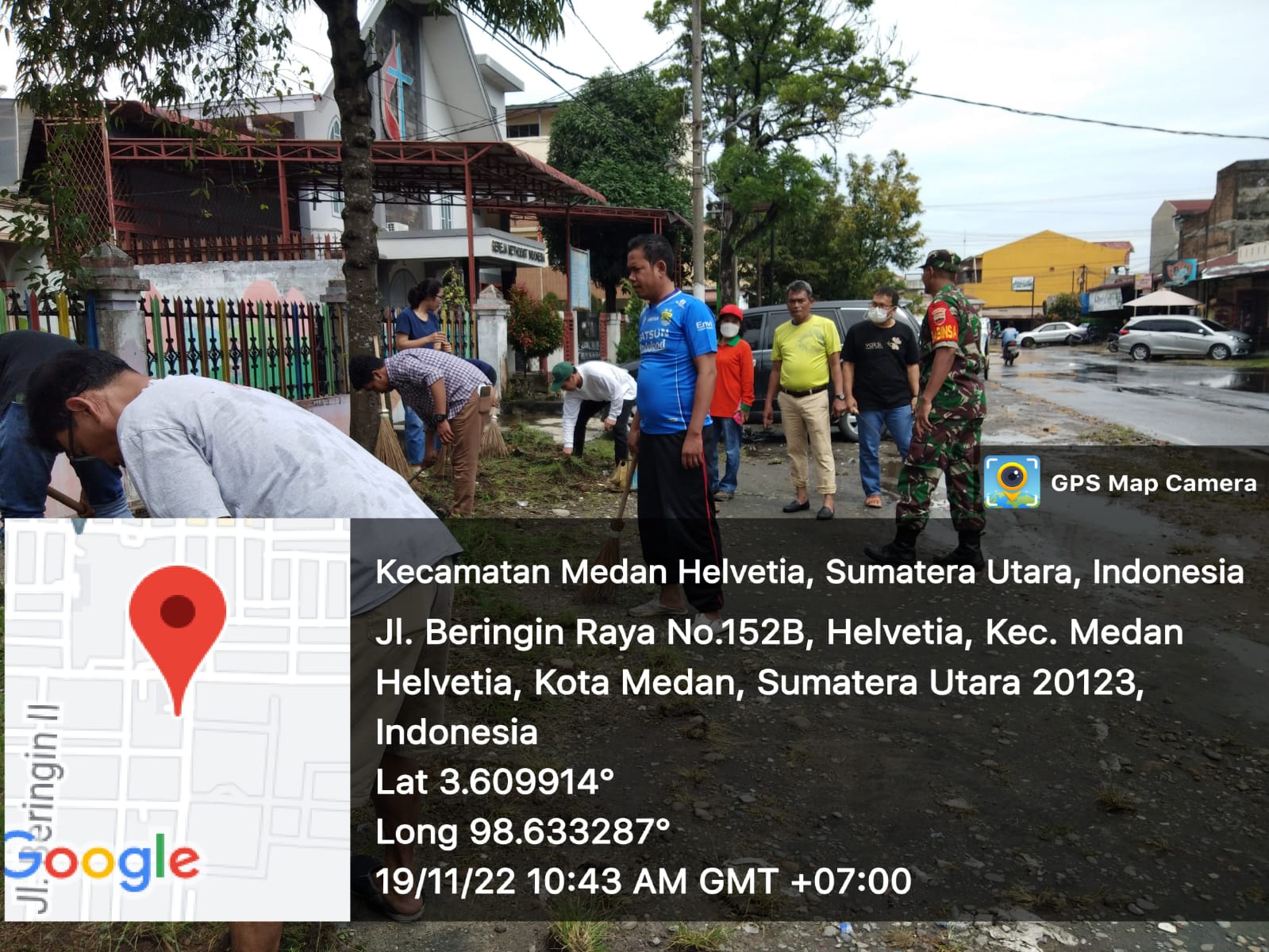 Medan Helvet – Babinsa Koramil 0201-06/MS Kodim 0201/Medan Sertu Wiyono Bersama Perangkat Kelurahan Binaannya Lakukan Gotong Royong Untuk Mengangkat Puing,Sampah dan Pengorekan lumpur A Akibat Terjangan Bencana Alam Hujan Deras Disertai Angin Kencang Sehingga Terjadi Banjir Untuk Itu Perlu Dilakukan pembersihan Agar Bekas Banjir Tidak Kelihat Becek.Jl.Beringin Raya Kel.Helvetia.Sabtu.19/11/22