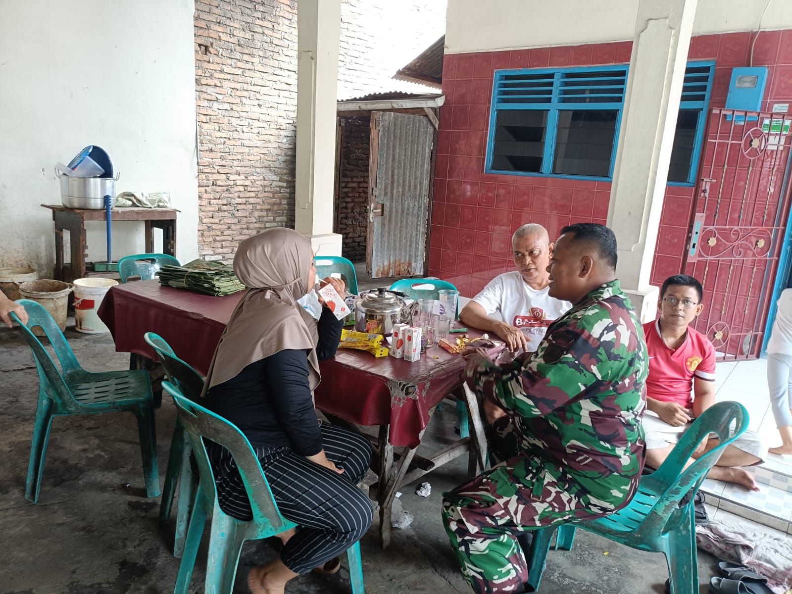 Medan. Dengan Santainya di Warung Nasi ibu Aci,Babinsa Pelda I Simatupang Bincang bincang dengan Warga binaan Bapak Sukur dan Ibu Hanum,dengan mempererat Hubungan Baik Melalui Silaturahmi dan mengajak Warga agar ikut Peduli menjaga kebersihan Lingkungan.kegiatan ini Berlangsung Di Jalan Abadi Link 4 Kel.Sunggal Kec.Medan Sunggal.Minggu(10/03/24)