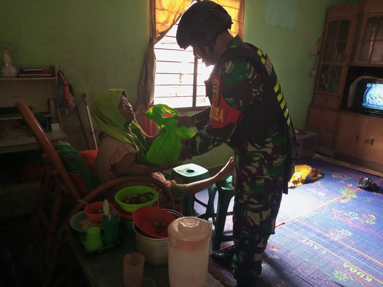 Tanjung Morawa-Babinsa Desa Tanjung Morawa B Serka B.Prayitno Koramil 0201-16/TM Kodim 0201/Medan ,memberikan bantuan Sembako kepada warga yang kurang mampu di wilayah binaannya, Rabu (14/06/2023.