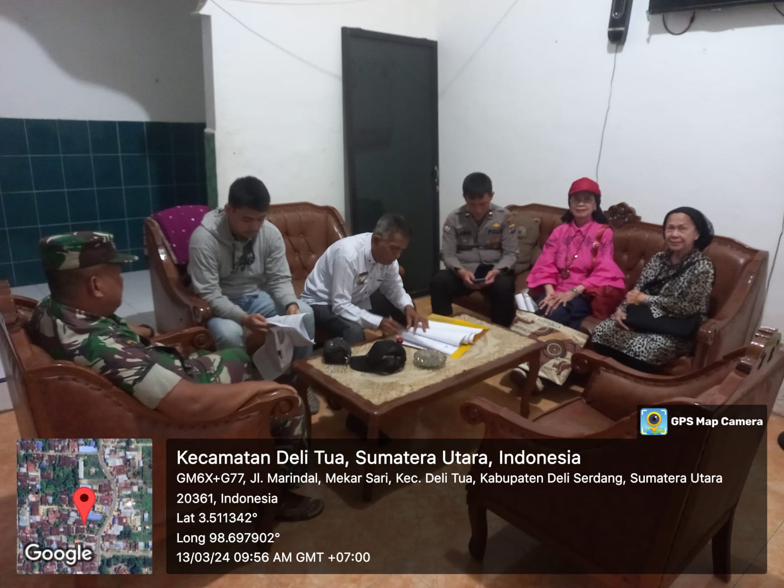 Babinsa koramil 0201 – 15/DT Sertu Muliadi bersama Bhabinkamtibmas polsek patumbak Aiptu Suzo Zebua Bantu membantu penyelesaian sengketa tanah antara dua warga yang terletak di dusun XI jalan pembagunan marendal 1 kecamatan Patumbak kabupaten Deli Serdang , panjang 24 m lebar 20 m, kamis (14/03/2024).