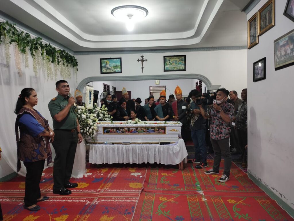 Kedatangan Danramil bersama anggota Koramil 0201-05/MB diterima langsung oleh pihak keluarga dengan suasana penuh duka.