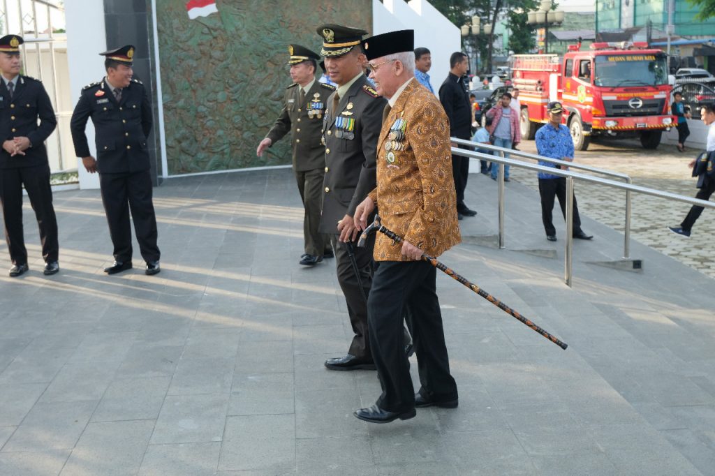 Lelaki tua membawa tongkat yang dipapah Dandim 0201/BS Kolonel Inf Roy Hansen J Sinaga. S. Sos, ini dulunya bisa dikatakan pria gagah berani dan disiplin tinggi. Hal ini terlihat langkah kaki seorang veteran saat menaiki dan memasuki Taman Makam Pahlawan.
