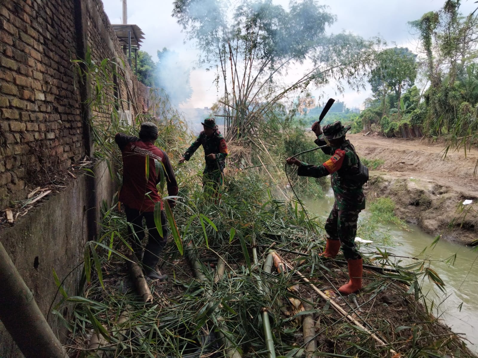 Dalam kegiatan tersebut personel yang tergabung dalam gotong royong nampak antusias dalam membersihkan bantaran sungai yang selama ini terkesan kumuh dan kotor yang di sebabkan oleh banyaknya tumpukan sampah dan pohon maupun rumput liar.
